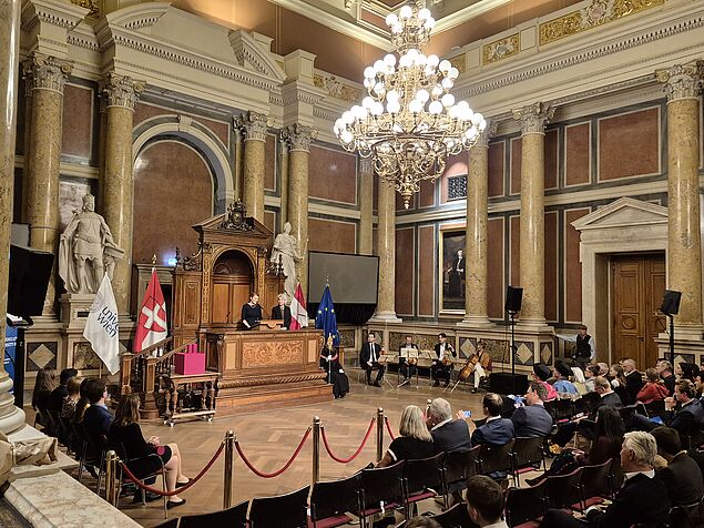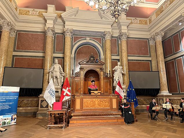 Die Zeremonie wurde vom wissenschaftlichen Leiter des Programms, Prof. Martin Gruber-Risak, mit einer festlichen Ansprache eröffnet. Nach der feierlichen Übergabe der Urkunden bereicherten zwei Absolventinnen, Mag.a Karin Varga, LL.M., und Mag.a Sabina Ritter, LL.M., die Veranstaltung mit ihren persönlichen Reden. Sie gaben inspirierende Einblicke in die Erfahrungen des vergangenen Studienjahres und schilderten die Perspektive der Studierenden.