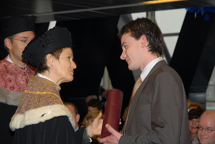9 October 2008 was graduation day for the first LL.M. class of students of the University of Vienna’s new International Legal Studies Program. In his Commencement Speech, the Austrian State Secretary for Foreign Affairs, Dr. Hans Winkler, a graduate of the Vienna Law School himself, underlined the practical relevance of international law in international relations and diplomacy – an experience repeatedly confirmed during his long career as a diplomat and legal adviser in the Austrian Foreign Ministry. In the presence of the entire teaching faculty of the LL.M. program and of Professor Straube, the director of the Center of Advanced Legal Education at the University’s Law School, the LL.M. diplomas were handed to the students by the vice-rector of the University of Vienna, Professor Christa Schnabl, and the director of the LL.M. program, Professor August Reinisch. Following the University’s string quartet and a forceful "Gaudeamus igitur", the traditional university graduation song, Elizabeth O’Brien and Finnur Magnusson, two freshly graduated students, extended their gratitude on behalf of the entire class of LL.M. students to the university and the faculty. In his concluding remarks, Professor Reinisch stressed the high academic achievements of the 2008 LL.M. class considering the heavy demands made upon them stemming from a broad area of international economic law as well as human rights and international organizations law. He expressed his hope that the rich program that, in addition to the regular curriculum, offered study trips to Geneva and The Hague as well as a number of lunch time lectures with high-profile speakers will attract many more future LL.M. students.