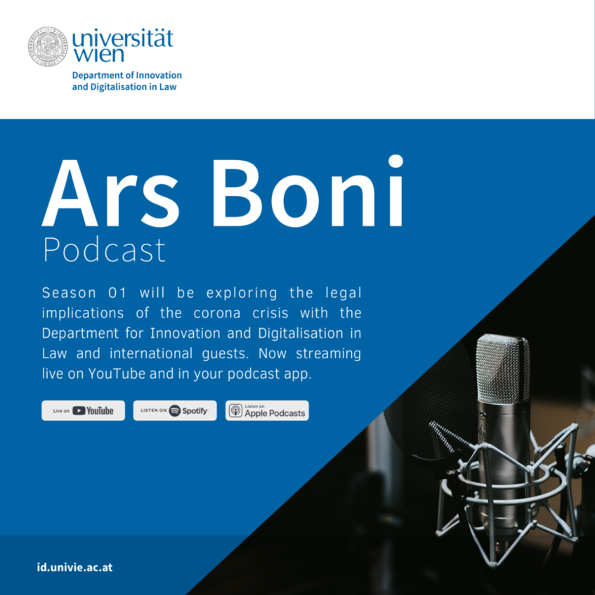 Am Institut für Innovation und Digitalisierung im Recht hat der wissenschaftliche Leiter Univ.-Prof. Dr. Nikolaus Forgó einen Podcast "Ars Boni" eingerichtet, der sich u.a. mit Fragen des Einflusses der COVID-19-Entwicklungen auf das Rechtssystem beschäftigt.